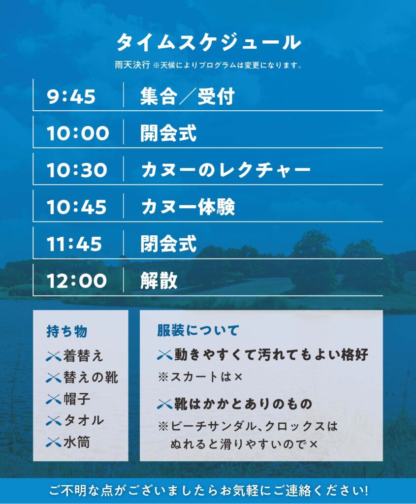 カヌー体験会 タイムスケジュール&持ち物